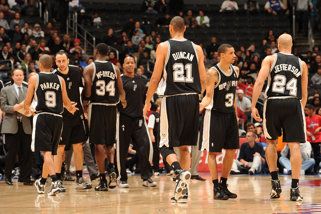 Popovich começou a partida com Tony Parker, George Hill, Richard Jefferson, Tim Duncan e Antonio McDyess. Depois de algumas variações no time titular, parece que Hill e Dice tomaram mesmo os lugares de Keith Bogans e DeJuan Blair.