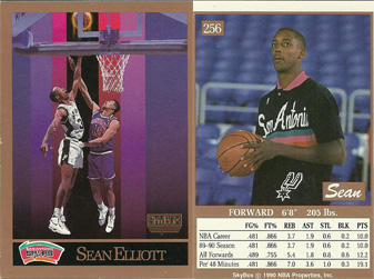 Assim como Robinson, Elliot era novato na temporada 1989/1990 – e, assim como o pivô, teria papel importantíssimo na história do Spurs. Porém, ao contrário do big man, Elliot não causou impacto imediato no time. O fato dele ter jogado como titular apenas 69 das 81 partidas em que autou é prova disso. Na temporada regular, o swingman apresentou médias de dez pontos (48,1% FG, 11,1% 3 PT, 86,6% FT), 3,7 rebotes e 1,9 assistências por exibição. Nos playoffs, disputou as dez partidas da equipe e seus números subiram um pouco: 12,7 pontos (55,2% FG, 72,4% FT), 4,1 rebotes e 1,8 assistências em 29,1 minutos por exibição. O card dele é da coleção Sky Box.
