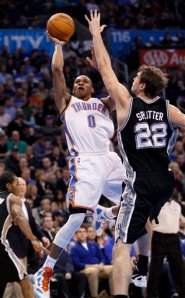 Dessa vez não deu. O San Antonio Spurs sucumbiu ao atleticismo da jovem e talentosíssima equipe do Oklahoma City Thunder, que, mesmo jogando uma partida pelo terceiro dia consecutivo, teve uma excelente noite e venceu por 108 a 96. Foi a primeira vez na temporada que um time venceu três jogos em dias seguidos.