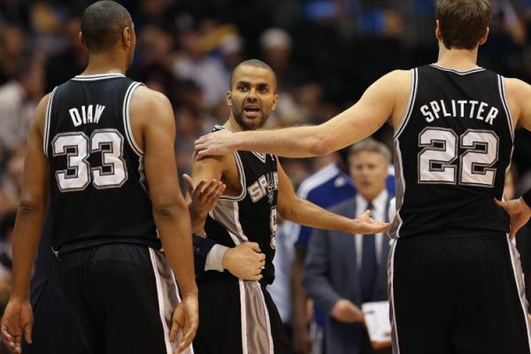 Diaw e Splitter sob os olhares de Parker (Reprodução/tiagosplitterbrasil.com)