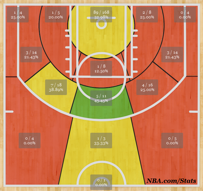 Johnson parece ser esse jogador quando olhamos para suas estatísticas. Na última temporada, com o Sacramento Kings, o jogador ocupou 13% da rotação da ala e 8% da rotação da posição 4 pela equipe. Além disso, coletou 9,4% dos rebotes do time enquanto estava em quadra. Para atuar pelo Spurs, no entanto, o atleta precisa melhorar seu tiro de longa distância – nada que Chip Engelland não possa resolver. Mas seu gráfico de arremesso do último campeonato mostra sua dificuldade em converter bolas do perímetro.