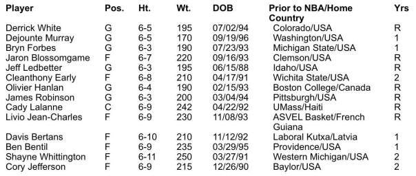 O plantel terá também jogadores que atuaram na D-League na última temporada. O armador Jeff Ledbetter e o ala-pivô Cory Jefferson defenderam o Austin Spurs, equipe ligada à franquia de San Antonio. Além deles, estarão no elenco o ala Cleanthony Early, que jogou no Santa Cruz Warriors e o ala-pivô Ben Bentil, que defendeu o Fort Wayne Mad Ants.