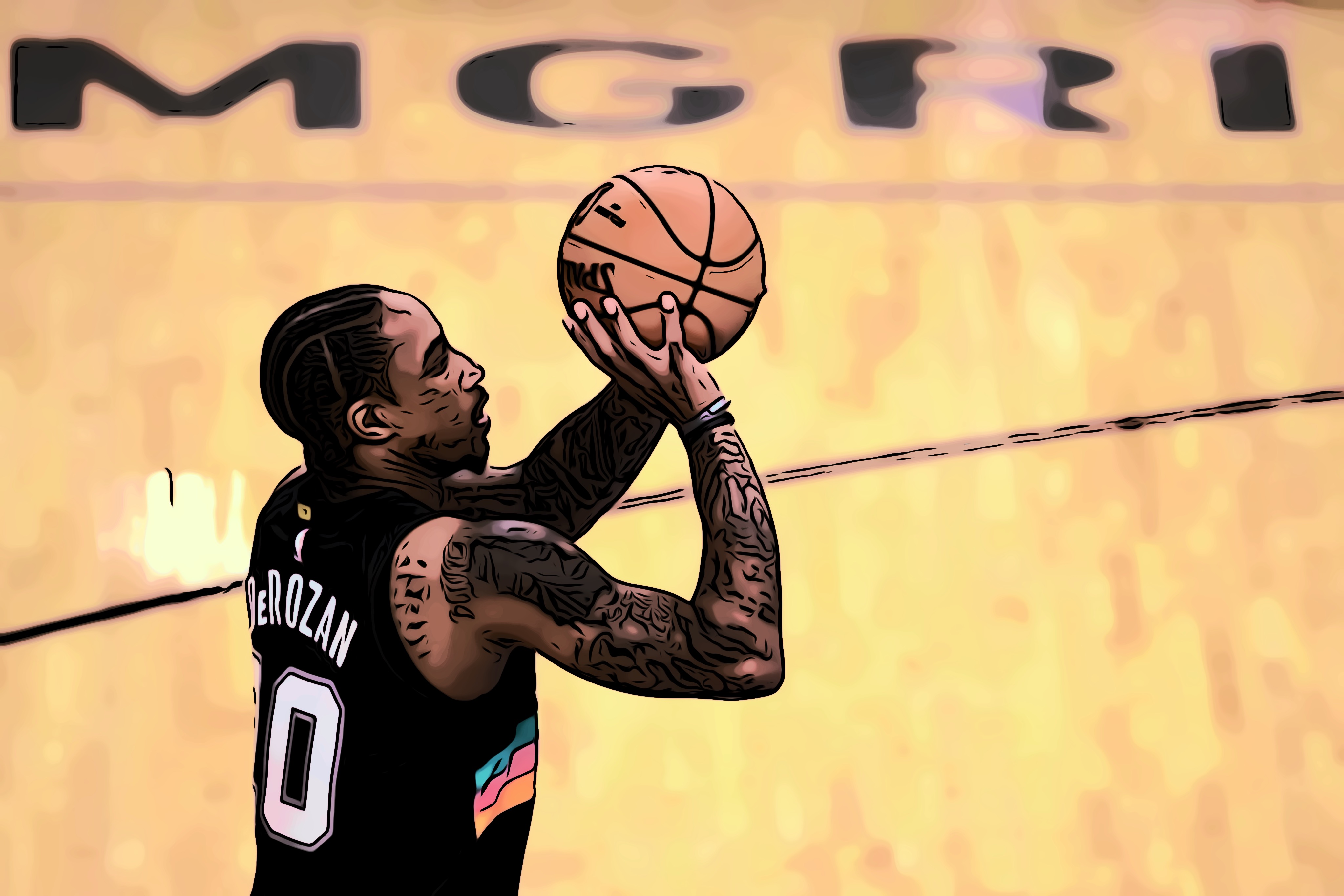 Arte do Cultura Pop sobre foto de DeMar DeRozan