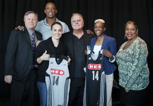Apresentação da nova camisa do San Antonio Stars para 2014, com a marca H-E-B estampada (Kin Man Hui/San Antonio Express-News)
