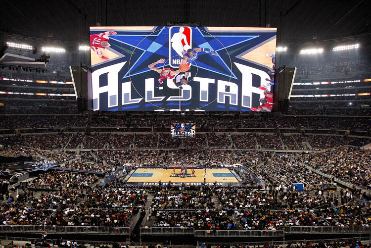 O Cowboys Stadium foi o cenário do maior público registrado para assistir a um jogo de basquete. Foram 108.713 espectadores para assistir a esse espetáculo, e um telão de nada menos que 2100 polegadas – isso mesmo, as dimensões são maiores que da quadra do jogo (a foto não mente).