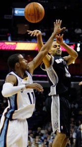 Com um jogo coletivo, o Spurs contou com bom desempenho da dupla Matt Bonner (15 pontos e três rebotes) e Tim Duncan (14 pontos, seis rebotes e quatro assistências) para triunfar em Memphis.